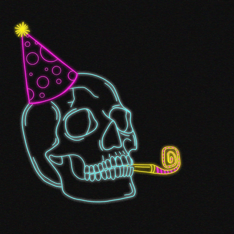 happy, party, illustration, birthday, happy birthday, death, neon, old, celebrate, skull, skeleton, party hard, age, congratulations, good job, woo, congrats, yass, timeless, happy bday, neon sign, feliz cumpleanos, party animal, neon light, ptrzykd, party party, over the hill, day of birth, happy birfday, party to death