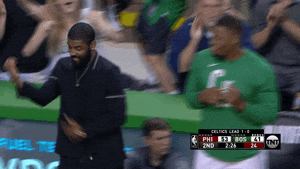 via giphy.com nba, work, haha, woo, boston celtics, euro, celtics, nba playoffs, kyrie irving, bos, bench reaction, terry rozier, finger roll, euro step, good move, what a move
