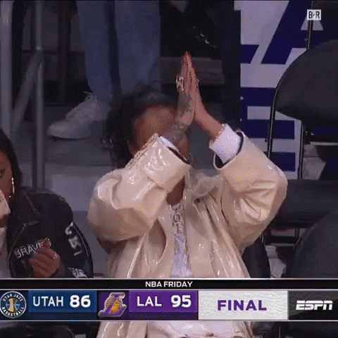happy, reaction, sports, sport, celebrate, rihanna, clap, los angeles, cheer, br, lakers, riri, bleacher report, ri ri, rihanna lakers